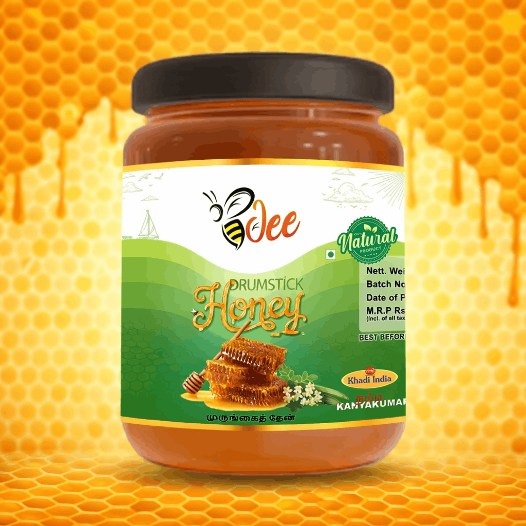 Made from the nectar of drumstick flowers, known for its health benefits. Rich in antioxidants and nutrients that support overall wellness. A mildly sweet honey with a unique taste and natural goodness.